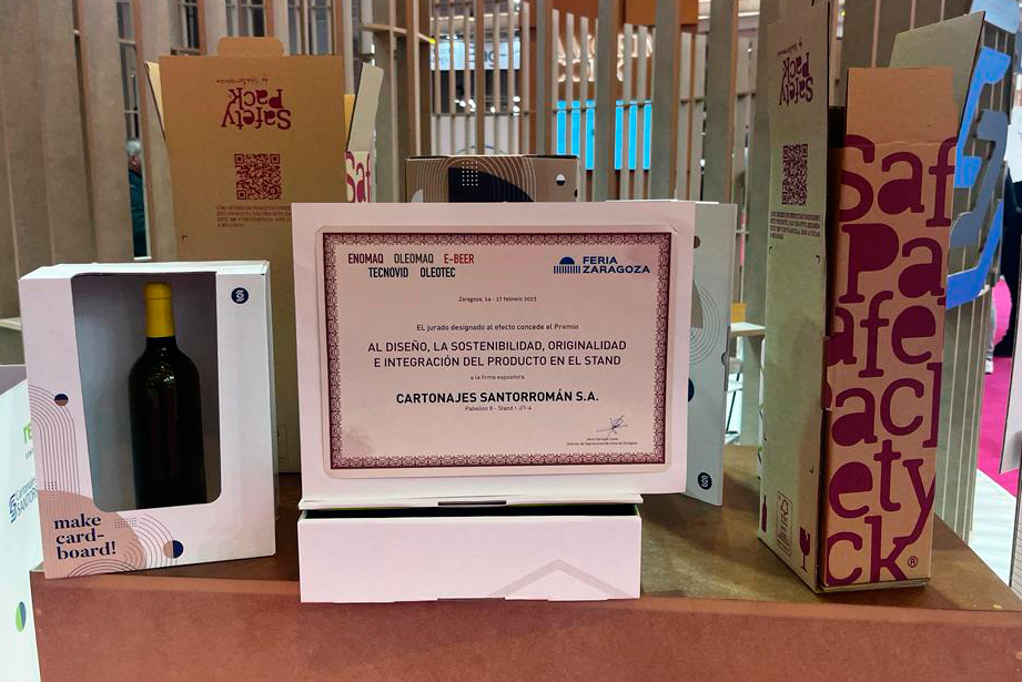 Premio para el Stand de Cartonajes Santorromán en Enomaq 2023